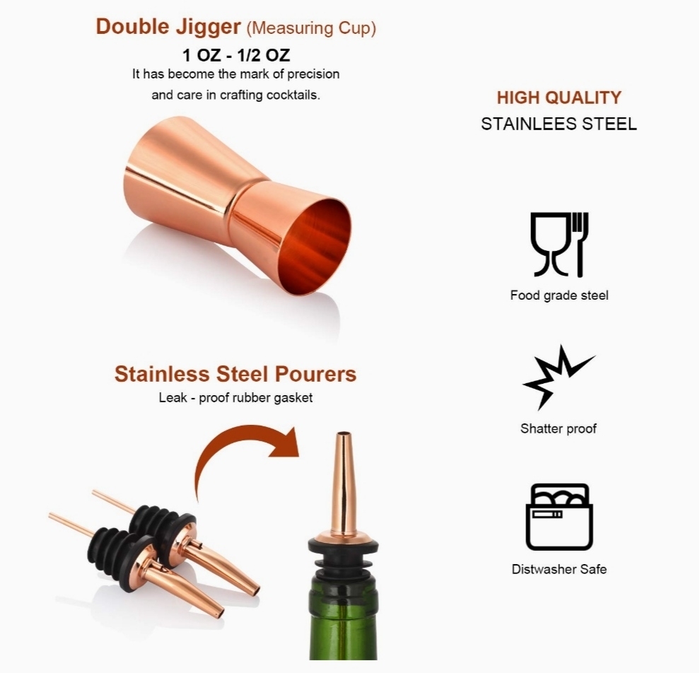 - Utiliza acero inoxidable ultraduradero, con un acabado en oro rosa que resiste el óxido, los arañazos y las abolladuras, duradero para barras de alto volumen y barras de hogar, también se puede limpiar de forma segura en el lavavajillas.
